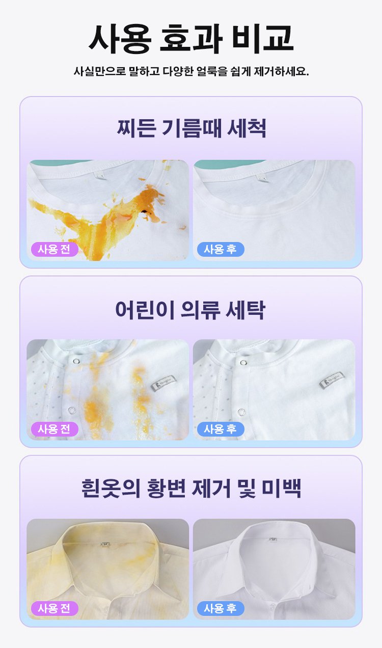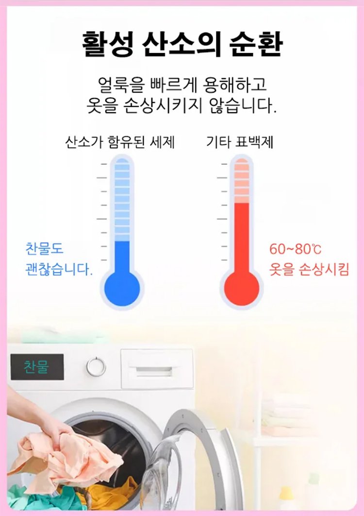 네 가지 주요 기능: 얼룩 제거, 색상 보호, 표백, 살균